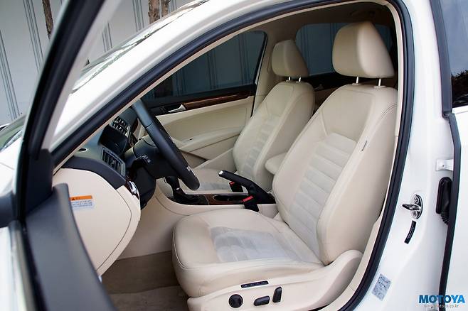 파사트 2.0 TDI의 시트는 착좌부가 디나미카 재질로 마감되어 있고 나머지 부분에 천연가죽이 적용된다. 착좌감은 적당히 솔리드한 편이고 약간 탄탄한 사이드 볼스터와 디나미카 재질의 착좌부 덕에 몸을 어느 정도 잡아 주는 편이다. 기본기에 충실한 시트라고 할 수 있다. 전동식 시트 조절 기능은 운전석과 조수석 양쪽 모두 적용되고 운전석에는 3가지의 메모리 기능까지 갖추고 있다.