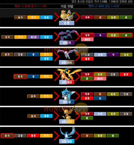포켓몬고 헝앱, 포켓몬 종합 상성표 공개