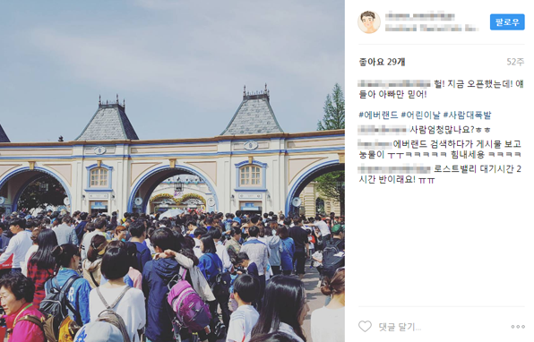 문제는 지난 해 어린이날이었다. 2015년 어린이날 방문객이 적었던 것이 알려진 탓인지 2016년 어린이날 에버랜드의 방문객 수에 관심이 쏠렸다. 그리고 어린이날 당일이 되자 트위터, 인스타그램 등 SNS에는 인파로 가득 찬 에버랜드 사진들이 올라왔다.
