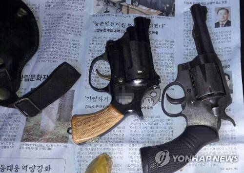 (군산=연합뉴스) 임채두 기자 = 26일 오전 9시 30분께 전북 군산시 옥산면 한 빈집에서 가스총 1정과 38구경 권총 1정, 실탄 3발이 발견됐다.