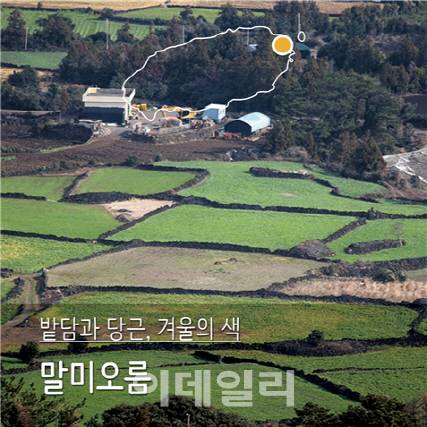모든 땅이 죽어있는 것처럼 느껴지는 겨울, 땅 위로 봉긋이 솟은 주황색 당근은 생명이자 기쁨을 주는 땅의 선물이다. 구좌읍에 있는 말미오름 정상에 오르면 다양한 색깔로 누빈 조각보처럼 펼쳐져있는 밭이 시야에 들어오고, 그곳에서 주황색으로 칠해놓은 듯한 밭을 볼 수 있는데, 밭에 심어놓은 당근들이다. 두산봉이라고도 불리는 말미오름은 올레길 1코스의 하이라이트로 알려져 있는데 우도를 바라볼 수 있는 지미봉과 마주하고 있다. 오름은 높지 않아 오르내리는데 30분 정도 걸린다.