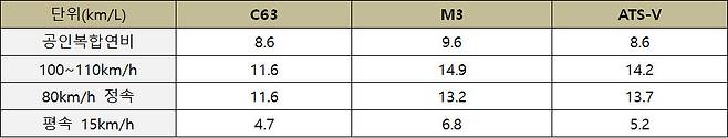연비 : M3 > ATS-V > C63
