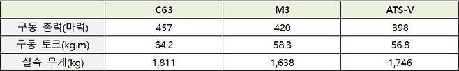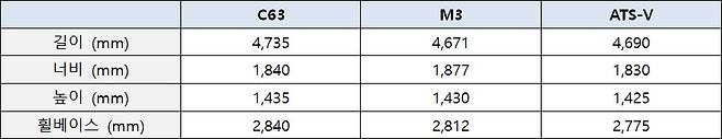 실제 측정 제원 : C63 = M3 > ATS-V