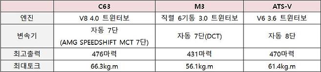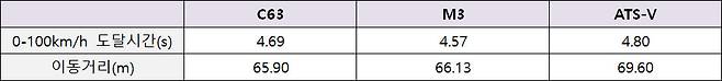 가속 성능 : M3 > C63 > ATS-V