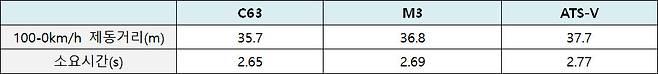 제동 성능 : C63 > ATS-V > M3
