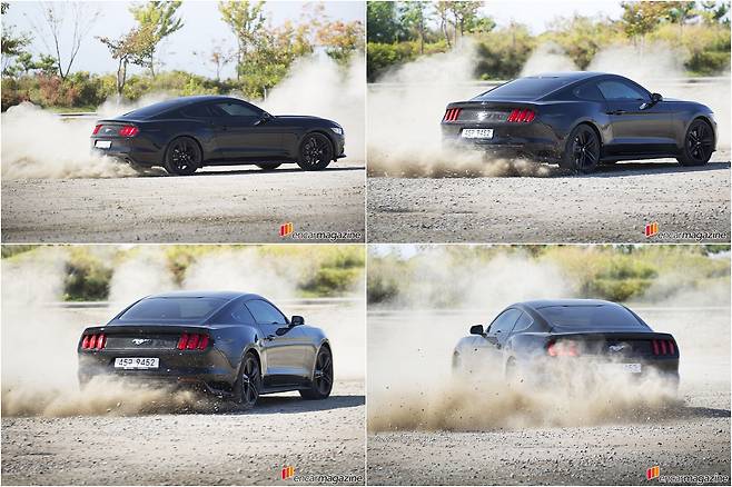 5L급 엔진을 탑재한 머스탱 GT 트랙모드는 대책없이 몰아붙인다는 느낌이었지만 2.3L급 엔진의 머스탱은 보다 차분하면서도 꾸준한 가속력을 보여줍니다. 이 정도라면 더 넓은 팬을 확보하기에 적당할 듯합니다. 헤어핀 구간의 격한 몸놀림 과정중에도 섀시의 안정감은 훌륭했고, 엔진과 차체의 조화도 만족스럽습니다. 다만 차체의 핸들링은 날카로운 편은 아닙니다. 스티어링의 끝단에서 느껴지는 유격도 꽤 있고, 엑셀 반응도 민첩함과는 거리가 있습니다.