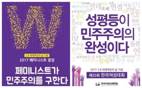 한편, 여성단체 등에선 다가오는 대통령 선거를 계기로 여성의 지위와 권리가 한층 높아지길 기대하고 있다. 대선주자들이 입을 모아 “페미니스트”라고 강조하고 있는 만큼 성평등에 대한 패러다임 전환도 가능할 수 있단 것이다. 한국여성단체연합은 ‘세계 여성의 날’(3월8일)을 맞이해 오는 4일 오후 서울 종로구 보신각에서 ‘페미니스트가 민주주의를 구한다’, ‘성평등이 민주주의의 완성이다’란 주제로 자유발언과 1㎞가량 ‘페미니스트 행진’ 등을 진행할 예정이다. 주최 측은 “시민들과 함께 여성들의 권리와 성평등, 민주주의를 얘기할 수 있는 공간이 되기를 바란다”고 밝혔다.