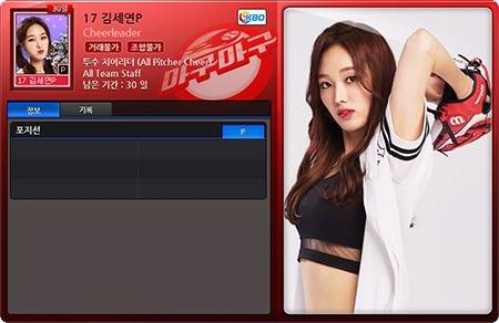 넷마블은 28일 '마구마구' 정기 업데이트를 통해 김세연 아나운서 치어리더 카드를 게임 내에 도입했다. 기간제 유료 아이템으로 판매되는 김세연 치어리더 카드는 투수와 타자 포지션 2종으로 출시되며, 구매 후 라인업에 장착시 모든 타자 혹은 투수의 능력치를 올려준다.