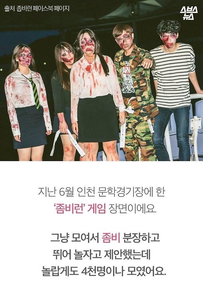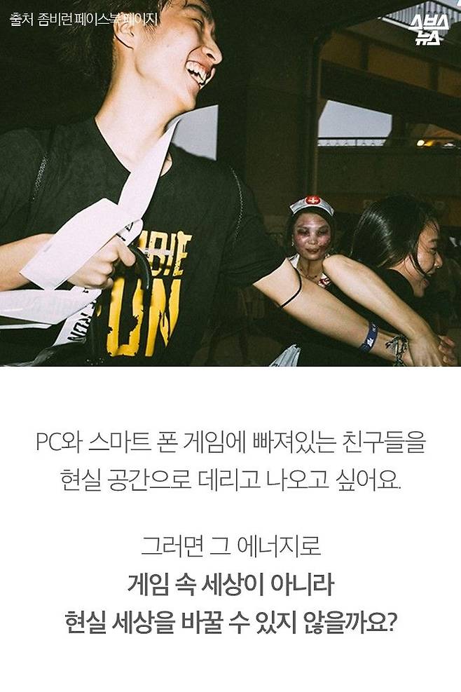 커무브 대표 원준호 씨는 좀비처럼 분장하고 뛰어다니는 '좀비런 게임'의 창시자입니다.
