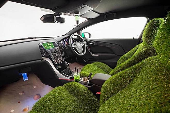복스홀은 아스트라(Astra) 모델을 월드컵 에디션이라 해서 뻥친적이 있었다. 2014년 만우절 거짓말이었는데, 브라질 월드컵을 기념한 에디션으로 외관을 보면 사실 이해할법도 하다. 한국에서도 2002 월드컵 에디션을 선보인 적이 있다. 하지만, 실내를 보면 빵~ 터진다. 축구장을 옮겨온듯한 잔디로 장식된 시트와 함께 축구경기를 관람할 수 있는 모니터, 그리고 브라질 해변을 느낄 수 있는 모래와 조개. 그리고, 칵테일까지 축구를 즐기기 위한 완벽한 준비를 해 놨다.
