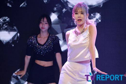 [TV리포트 = 문수지 기자] 걸그룹 '티아라'의 큐리가 14일 오후 서울 마포구 서교동 신한카드판스퀘어에서 열린 13번째 미니앨범 'What's my name?' 발매 기념 쇼케이스에 참석해 열띤 공연을 펼치고 있다.