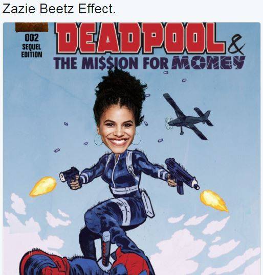 그는 “재지 비츠 효과”라는 글과 함께 이미지 한 장을 올렸다. 도미노가 데드풀 위에서 총을 쏘는 모습이다.