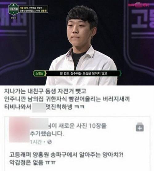 강서 지역 참가자 양홍원도 마찬가지였다. 이미 같은 채널 힙합 서바이벌 프로그램 ‘쇼미더머니4’(2015)에서 실력을 인정받은 그는 현장 관중의 절대적인 지지를 받았다. 그러나 방송 직후 SNS와 온라인 커뮤니티에 동급생을 괴롭혔다는 내용의 글이 올라왔다. 양홍원은 제작진을 통해 “과거 실수를 깊이 뉘우치고 반성하고 있다”고 사과했다.