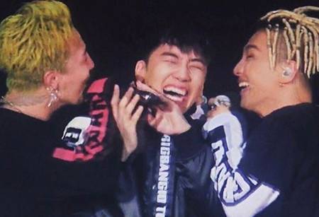 공개된 사진 속에는 무대 위에서 지드래곤, 태양과 함께 장난을 치고 있는 승리의 모습이 담겼다.