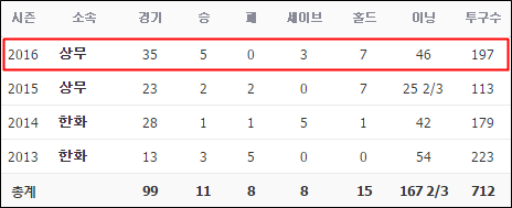 * 임기영의 2016시즌 퓨처스리그 이닝 기록