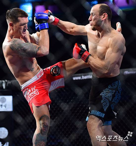 [엑스포츠뉴스 김한준 기자] 18일 오후 서울 송파구 올림픽공원 올림픽홀에서 열린 신생 종합격투기 '배틀필드' 조 레이와 이고르 시비리드의 메인 이벤트 경기, 이고르 시비리드가 공격을 시도하고 있다.