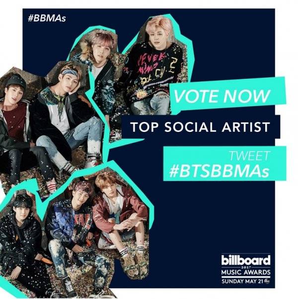 지난 1일(현지시각)부터 2017 빌보드 뮤직 어워드 '톱 소셜 미디어 아티스트(Top Social Media Artist)' 부문 투표가 시작됐다. 이 부문은 방탄소년단이 이름을 올린 부문이다.