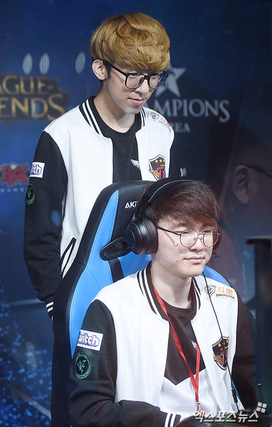 [엑스포츠뉴스 인천, 박지영 기자] 22일 오후 인천광역시 부평구 삼산월드체육관에서 열리는 '2017 리그 오브 레전드 챔피언스 코리아(롤챔스) 스프링' 결승전 SKT T1과 kt 롤스터의 경기에 앞서 SKT T1 '스카이' 김하늘이 '페이커' 이상혁의 장비 세팅을 지켜보고 있다.