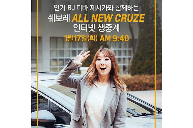 특히, 이번 생중계는 인기 BJ(Broadcasting Jockey) 디바제시카가 사회자로 나서 ‘심쿵 TOP 10 크루즈의 모든 것’을 진행, 한층 진보된 디자인, 성능, 안전 및 편의사양을 적용한 올 뉴 크루즈에 대한 풍부한 정보를 제공할 예정이다.