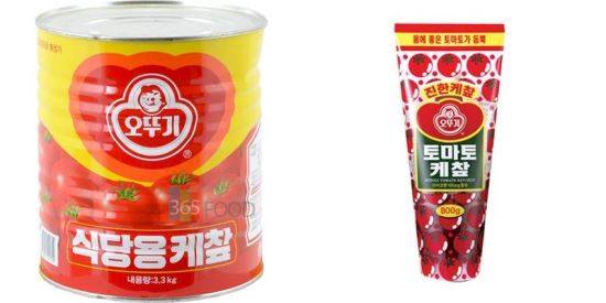 케첩은 콜라와 달리 업소용과 가정용의 성분이 달랐다. 오뚜기 가정용 케첩에는 토마토 페이스트가 43.8% 들어가는데 업소용(식당용)에는 24% 들어갔다. 대신 업소용 케첩은 당분이 더 많이 들어있기 때문에 더 달게 느껴지는 것이다. 하인즈 케첩은 업소용과 가정용 모두 동일하게 토마토 페이스트를 35% 넣는다.