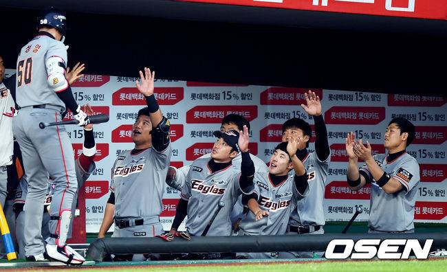 [사진]솔로홈런 쏘아올리고 축하받는 이성열