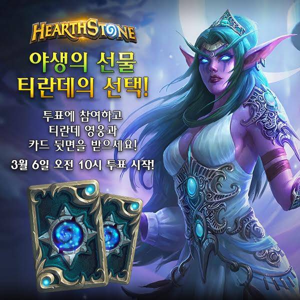블리자드엔터테인먼트는 '하스스톤'에 참여만 하면 티란데 영웅과 카드 뒷면을 무료로 얻을 수 있는 '야생의 선물 티란데의 선택!'을 진행한다.