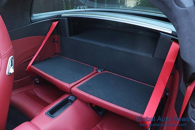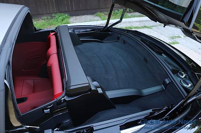 뒤쪽에 엔진이 있고 뒷바퀴를 굴리는 모델인 만큼 리어 엔드의 비중이 크다. 그럼에도 전동 소프트 톱으로 인한 볼륨 증가는 없다.