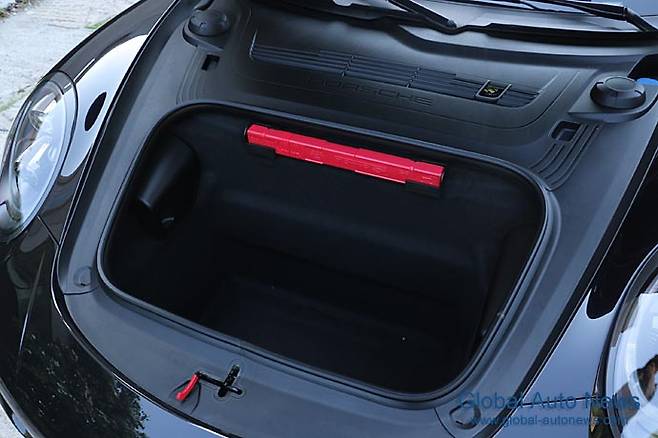 또 하나. 오늘날의 타르가는 전동 슬라이딩 방식으로 바뀌었다. 유리로 된 루프인데 그것을 오늘날의 전동식 하드톱처럼 탈착을 하지 않아도 되게 하고 있다. 개폐 시간은 19초. 버튼을 작동하면 리어 글래스가 물러나고 그 때 소프트톱이 엔진룸 위쪽으로 수납이 된다. 톱을 위한 장비로 인해 더 무거워진 것은 어쩔 수 없다.