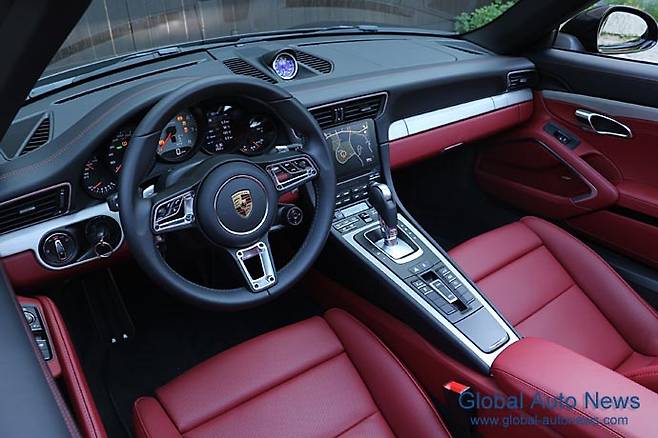 인테리어에서는 이그니션 키의 위치와 5연 미터, 그리고 타코미터가 중앙에 배치된 것 등은 변함없다. 타르가 4 GTS는 엔진 회전계의 바탕이 붉은 색인데 4S는 검정색이다. 속도계의 반대쪽에 있는 클러스터에는 다양한 차량 정보가 표시된다. 이번에는 한글 버전의 내비게이션 지도까지 표시된다. 스포츠 크로노 패키지가 채용되어 있어 횡방향의 가속도를 표시하는 G-Force 디스플레이도 있다. 오늘날 등장하는 포르쉐는 성격은 하드코어를 지향해도 표현은 모던함을 추구하고 있다. 모던하다는 것은 21세기형의 정통 스포츠카는 그들의 DNA에 충실하면서도 시대적인 트렌드를 충실히 추구하고 있다는 말이다. 물론 그것은 GT(Grand Tourer)화 라는 말로 간단하게 표현될 수도 있다.