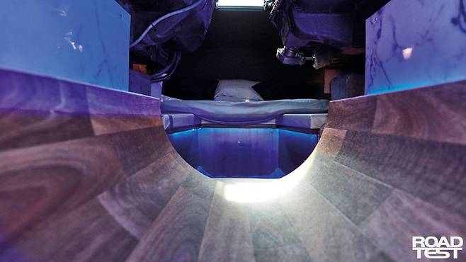 하지만 쌍요트를 보니 로디우스는 도로보다 물 위가 제격이다. 탑기어는 로디우스 차체 밑을 절단한 다음, 갑판 위에 심었다. 독특한 C필러의 형상과 요트의 실루엣이 제법 어울린다. 실내도 제법 요트 분위기가 난다. 센터페시아 중앙에 있던 계기판은 각종 게이지로 바꿔달았고, 뒤쪽엔 의자 대신 피아노를 붙였다. 또한, 아래층엔 널찍한 취침 공간과 TV까지 마련했다. 스티어링 휠과 도어트림 등은 그대로 유지했다.