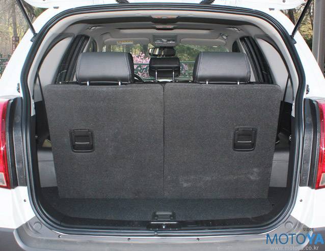 뒷좌석 역시 착석감은 무난한 수준이기는 하나, 최근의 경쟁자들에 비해 딱히 유리한 점은 없다. 각도 조절이 가능한 점은 예부터 이 급의 SUV들에게는 기본 소양으로 자리 잡은 지 오래인 데다, 캡티바의 경우, 그 폭이 그리 크지 않다. 공간은 성인 남성에게 부족하지 않은 정도를 제공하지만 최근 등장하는 경쟁자들의 신모델들처럼 여유로운 편도 아니다. 3열 좌석도 여전히 살아 있다. 성인 남성을 승차시키기에는 다소 무리가 있어, 활용성은 다소 제한적이다.