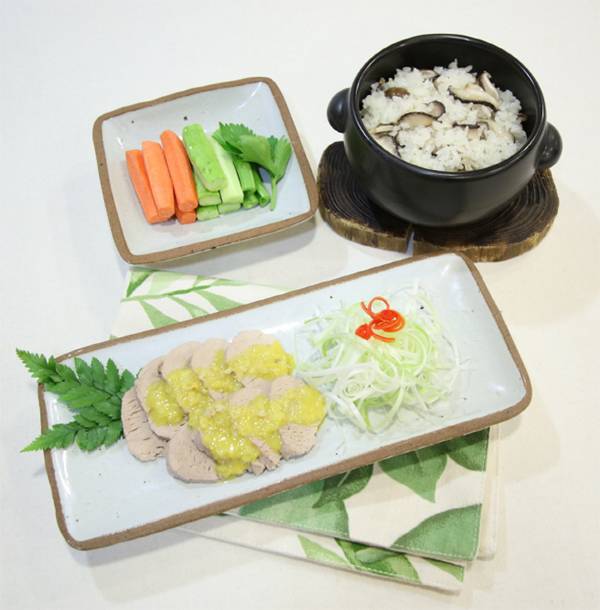 돼지 안심수육파냉채는 그 자체로 훌륭한 한 끼가 되지만 밥을 꼭 먹어야 한다면 '표고버섯밥'이 딱이다. 표고버섯은 돼지고기와 궁합이 상당히 좋은 식재료다. 표고버섯의 렌티난 성분이 콜레스테롤이 체내로 흡수되는 것을 억제해주기 때문이다.