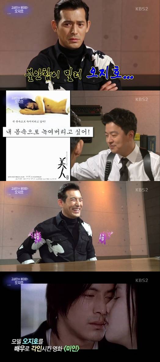 데뷔 때부터 조각미모를 자랑했던 오지호는 충무로를 뜨겁게 달궜던 영화 '미인'에 대해 묻자 "기억이 나지 않는다"고 말했다. 오지호는 '미인' 포스터 속 노출 사진과 '내 몸으로 녹여버리고 싶어'라는 문구에 부끄러워했다. 오지호는 "내 인생에서는 가장 중요한 작품이다"고 말했다.