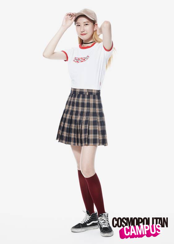 귀엽고 깜찍한 로고 티와 체크 테니스스커트를 활용한 스트릿 패션! 곧 보드를 타고 갈 것만 같은 스타일링이다. 아무런 프린트가 없는 스커트 말고 노란색의 체크무늬가 들어간 스커트를 활용하면 조금 더 발랄하고 상큼한 스탕일링을 연출할 수 있다는 사실!