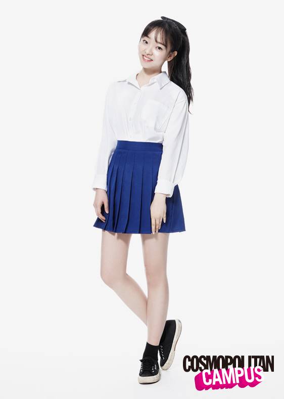 걸그룹 못지않은 스쿨룩 패션. 교복을 연상케하는 화이트 셔츠와 네이비 컬러의 스커트를 떠올리면 쉽다. 이 때 세일러복이 연상되는 디테일이 들어간 셔츠를 활용한다면 효과는 배가 된다는 사실!