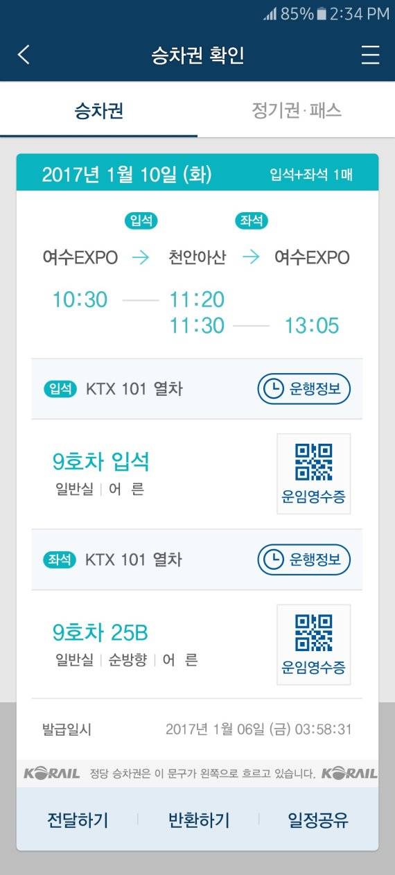 KTX 입석+좌석 승차권, 코레일톡으로 산다