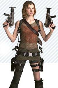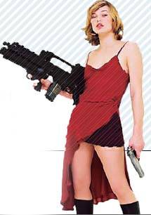 앨리스, 람보가 되다. 이제 앨 리스는 드레스가 아니라 탱크 톱에 팬츠 차림이다. 좀비를 벌집으로 만들기 위해, 권총·샷건· 기관총도 두 정씩 차고 다닌다.