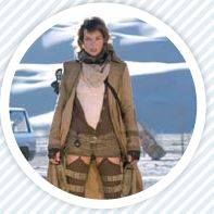 종말 직전의 세계를 누비는 앨리스는 역대 가장 너저분한 모습이다. 탄띠에 각종 무기를 차고 짙은 색 야전상의를 입었다. 섹시함은 덜고 사실감은 더한 셈.