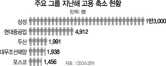 일자리 감소는 수치로도 극명하게 드러난다. 기업 경영성과 평가기관인 CEO스코어에 따르면 지난해 30대 그룹 계열사와 은행들은 고용 인력을 전년보다 1만9,903명(2.1%) 줄였다. 게다가 기업 대다수가 공격적인 확장정책 대신 축소 지향 경영에 몰두하고 있어 당분간 괜찮은 일자리는 늘어나기 어렵다는 것이 전문가들의 전망이다.