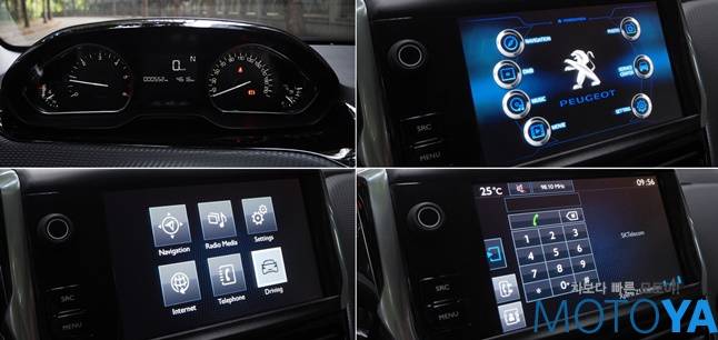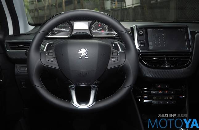 ‘아이-콕픽(i-Cockpit)’ 콘셉트가 적용된 내부는 단순 명료한 구성이다. 사용에 따른 편의성을 크게 증대했고 대시보드 상단 영역을 크게 낮춰 개방감을 극대화했다. 디자인적으로는 대시보드를 횡으로 크게 지나는 ‘V’자 형태의 카본 파이버 페인팅 패널이 역동적인 느낌을 크게 한다.