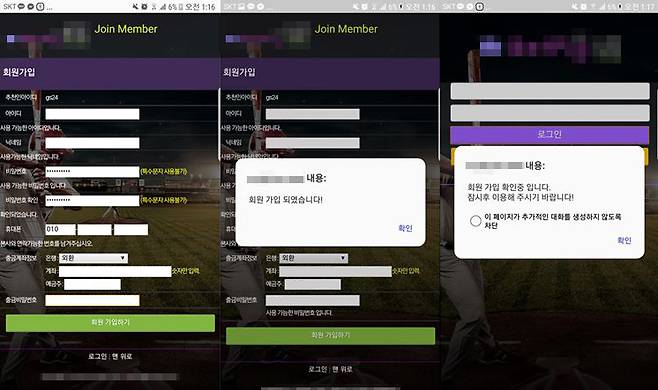 해당 업체에서 전화가 와 통화를 한 뒤 정상적으로 회원가입이 되었다. 첫 충전에 관련된 이벤트가 메인화면에 떴다. 회원가입 절차는 생각보다 간소했다. 5분 이내로 계정을 만들 수 있을 만큼 빠르고 절차가 간단해 청소년들이 쉽게 가입할 수 있다. 또한, 미성년자인지 성인인지 구별하는 장치가 전혀 없었다. 나이를 확인하지 않기 때문에 청소년들이 가입하기가 더욱 쉽다. 다음은 회원가입을 하며 통화한 내용이다.