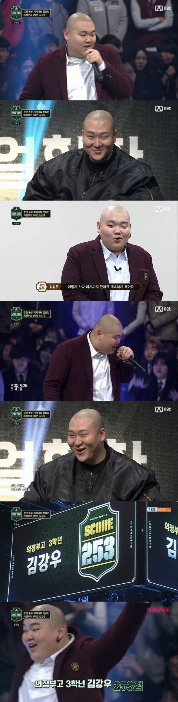 의정부고 3학년 김강우가 압도적인 점수로 '고등래퍼' 1위에 올랐다.