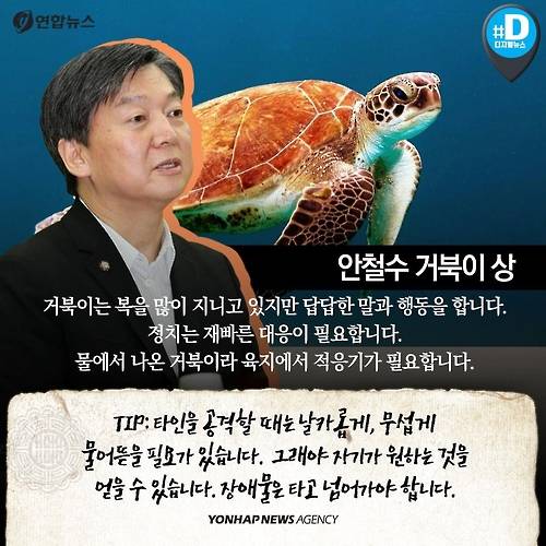 거북이는 복을 많이 지니고 있지만 답답한 말과 행동을 합니다. 정치는 재빠른 대응이 필요합니다. 물에서 나온 거북이라 육지에서 적응기가 필요합니다.