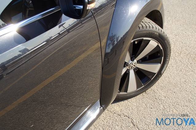 더 비틀의 익스테리어는 깜찍하고 귀여운 외모의 뉴 비틀에 비해 전반적으로 ‘보이쉬’해졌다는 느낌이 강하게 든다. 특히나 블랙 보디 컬러의 시승차는 그러한 이미지를 충분히 표출해내고 있다. 뉴 비틀을 기반으로 전반적인 형태는 물론 디테일까지 한층 현대적이고 어그레시브한 스타일로 다듬어 냈다. 과거의 ‘원형’과 ‘곡선’에 집중했던 뉴 비틀과 달리 ‘직선’적이고 요소가 강조되어 있어 좀 더 도전적인 인상을 자아낸다.
