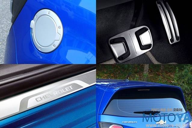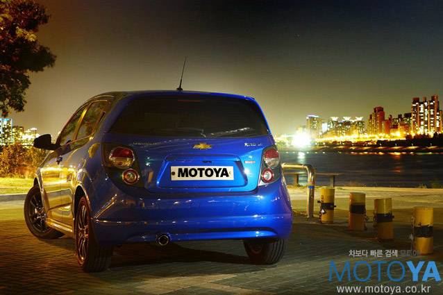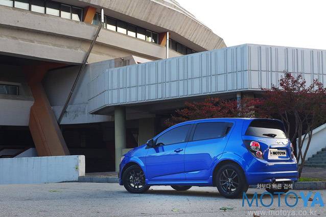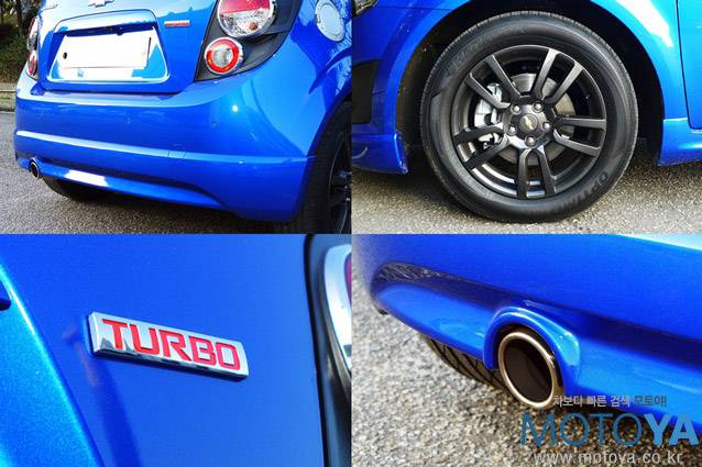시승차는 스포츠 패키지가 적용된 모델로, 당돌한 아베오의 외모를 더욱 호전적으로 만들어준다. 스포츠 바디킷과 가운데 부분이 움푹 들어간 전용 리어 스포일러, 실버 주유구 캡, 16인치 건메탈 블랙 알로이 휠 등으로 잔뜩 멋을 부렸다. 물론, RS모델에 사용되는 전용 바디킷만큼 공격적인 모양새를 만들어주지는 않지만 `Extreme Fun Driving`이라는 슬로건에 어울리는 도전적인 인상을 자아내기에 충분하다. 타이어는 205/55 R16 규격의 한국타이어 옵티모 H428을 사용하고 있다.
