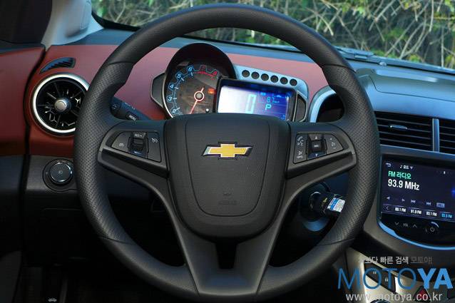 아베오의 스티어링 휠은 쉐보레의 모델들이 두루 사용하고 있는 형태에서 크게 벗어나지 않는다. 수지로 마감되어 있으며, 좌측에는 크루즈 컨트롤 조작부가, 우측에는 핸즈프리 및 오디오 리모컨이 마련되어 있다. 림의 굵기는 적당히 가는 편으로, 손에 쏙쏙 들어오는 질감이 만족스럽게 다가온다. 또한, 9시-3시 방향의 형상을 잡고 있을 때의 느낌이 좋은 편.