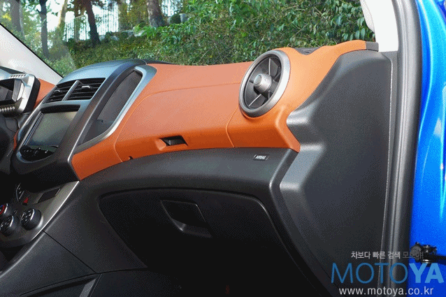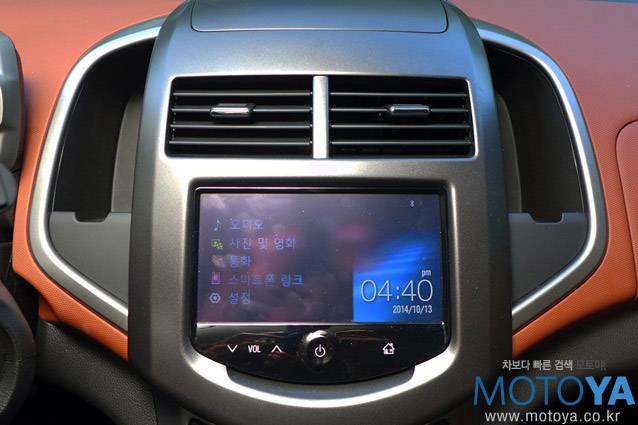 센터페시아에는 사각형의 송풍구 아래로 후방 카메라 화면을 겸하는 마이링크 화면이 자리한다. 양 측면에는 하나씩 마련된 수납 공간은 `커플 포켓`이라는 이름의 다용도 소물함이다. 휴대전화나 배터리 등의 자잘한 물건들을 넣어 두기 좋은 공간이다. 쉐보레 마이링크는 세련된 폰트를 채용함은 물론, 비교적 간단한 인터페이스를 가지고 있어, 처음 접하는 운전자도 비교적 손쉽게 적응이 가능하다. 글로브 박스는 상/하단으로 나뉘어져 있는데, 브릭 색상이 적용된 상단 부분은 내부에 AUX 및 USB 포트가 하나씩 구비되어 있는데, 쉐보레는 이를 `스마트 박스`로 부른다.