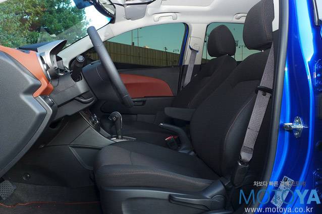 앞좌석은 탄탄한 착석감을 지니고 있으며, 등받이의 양 날개가 크게 만들어져 있어, 몸을 잡아주는 데 도움을 준다. 좌석의 위치 조정은 모두 수동으로 이루어진다. 앞좌석은 양쪽 모두 열선 기능을 지원하고 운전석에는 작은 팔걸이가 마련되어 있다. 머리 공간이 상당하여, 체격이 큰 성인 남성도 쾌적하게 승차할 수 있다. 뒷좌석의 공간은 무난한 수준이다. 움푹 들어간 앞좌석 등받이의 형상덕에 다리 공간도 부족함이 없으며, 머리 공간도 여유가 있다.
