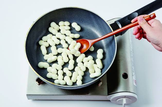 3. 팬에 식용유를 둘러 떡을 노릇하게 볶는다.