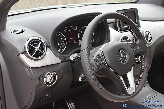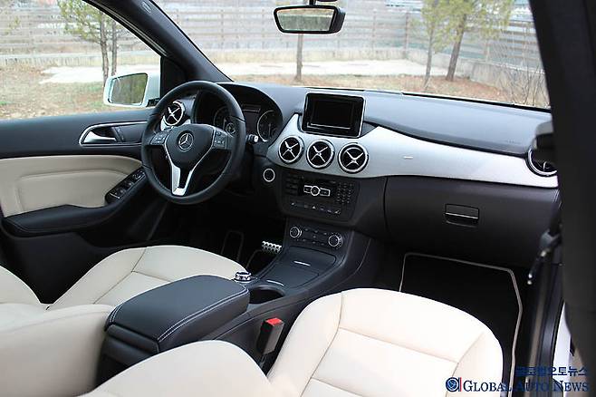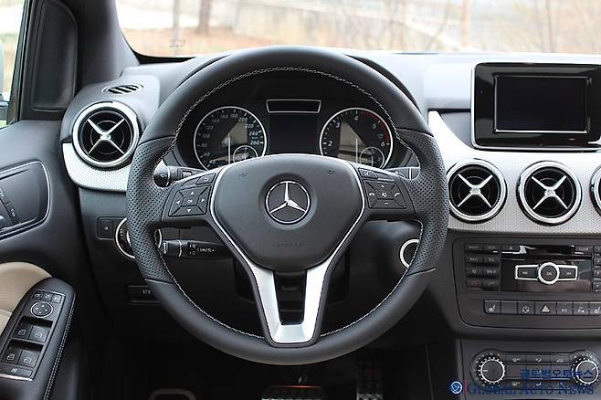 전체적인 질감의 상승도 눈에 띈다. 대시보드에도 가죽을 옵션으로 선택할 수 있다. 고급 사양의 경우 대시보드 위와 도어의 손잡이까지 레저로 마감되더 있다. 메르세데스가 2세대 B클래스의 포지셔닝을 어떻게 하고자 하는지를 보여 주는 내용이다. 질감과 촉감은 메르세데스다운 수준.
